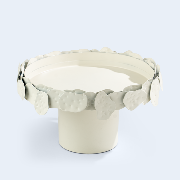 The Ardessa Tray celebrates quiet elegance with a modern sculptural form. Its smooth ivory base rises into a pedestal silhouette, crowned with delicate, hand-formed petal accents that encircle the rim like a blossoming wreath. Subtle textures bring a natural charm, while the minimalist tone keeps it refined and versatile.