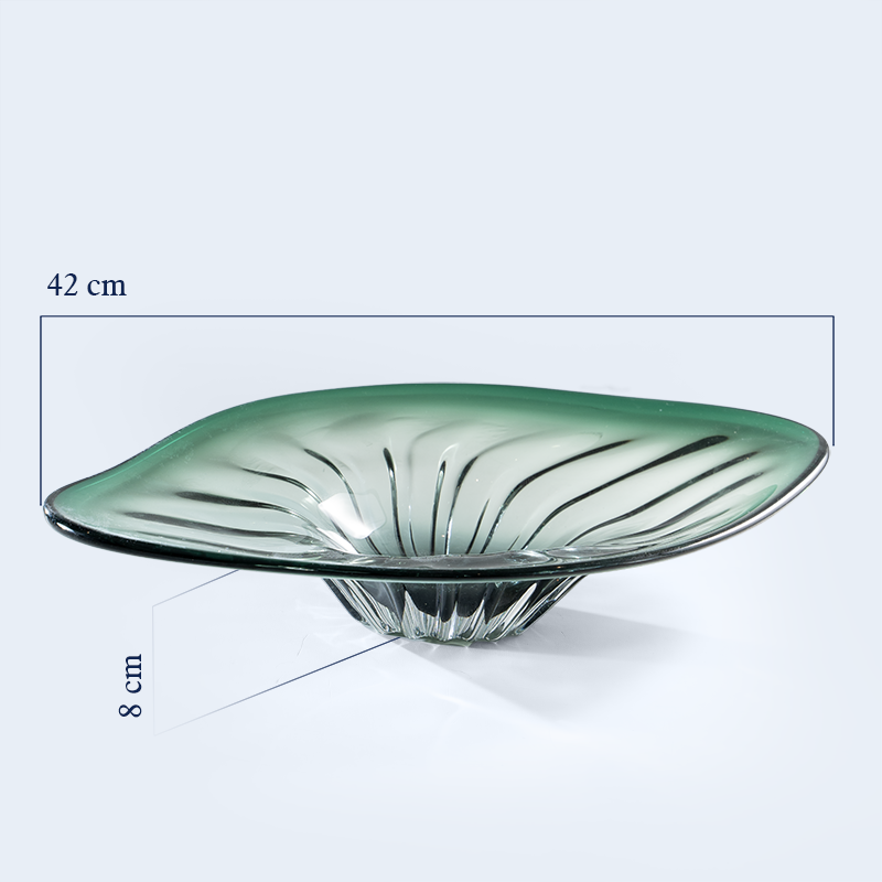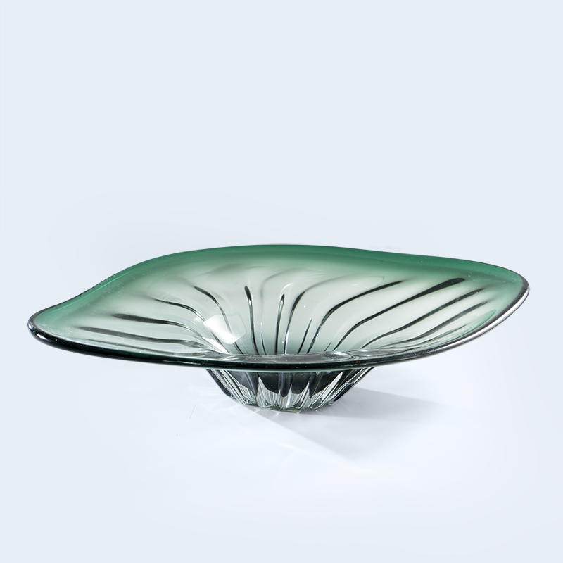 Classic in spirit and graceful in form, Beatrice is a refined tribute to timeless beauty. Shaped with soft curves and a gentle petal-like structure, this weighty glass tray features a serene green hue that fades into crystal clarity—evoking nature’s elegance with every line. The sculpted base adds quiet strength and balance, making it a striking yet subtle presence on any table.