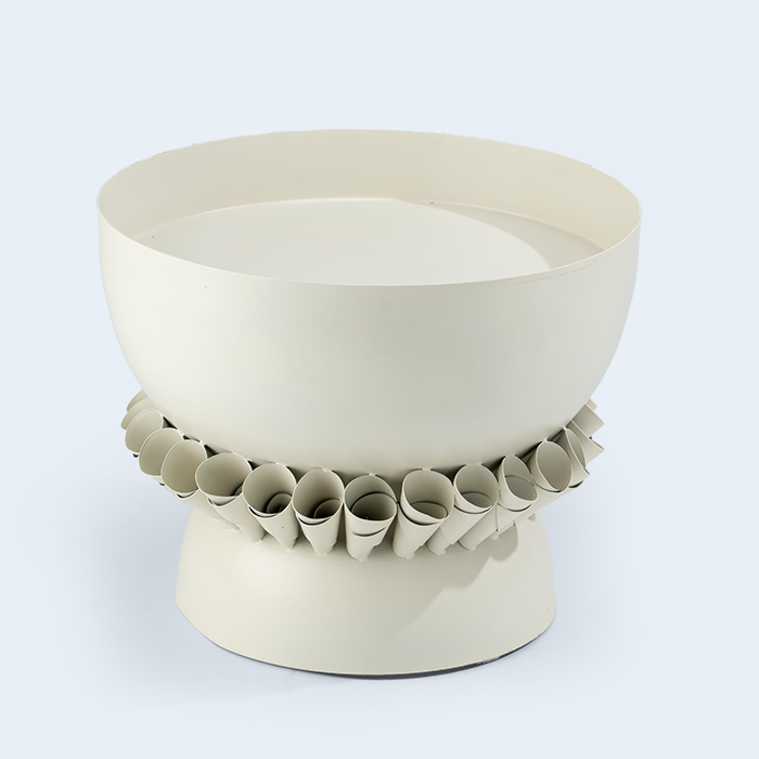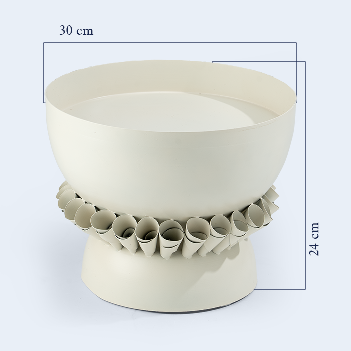 Corvina is a sculptural ivory-toned bowl adorned with a ring of rolled petal-like details at its base. Inspired by nature’s organic forms, it blends modern minimalism with delicate artistry. A versatile piece, Corvina serves beautifully as a centerpiece, for displaying confections, or as a refined decorative statement in any setting