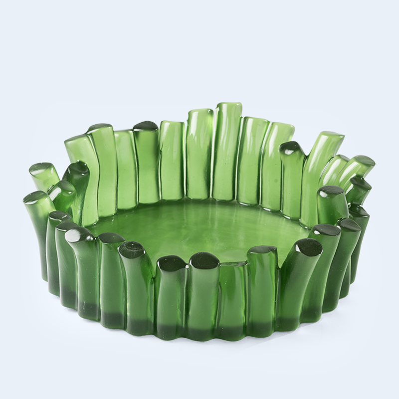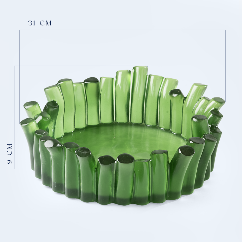 Echo is a striking green tray that combines modern design with timeless elegance. Its rounded shape and glossy finish create a polished, vibrant look, while the unique line-joined design adds depth and texture, making it a standout piece. The rich green hue evokes a sense of nature and tranquility, making Echo the perfect choice for adding a pop of color to any space. Whether used for serving or as a decorative accent, Echo brings a harmonious blend of style and sophistication, echoing both beauty and function in every detail.