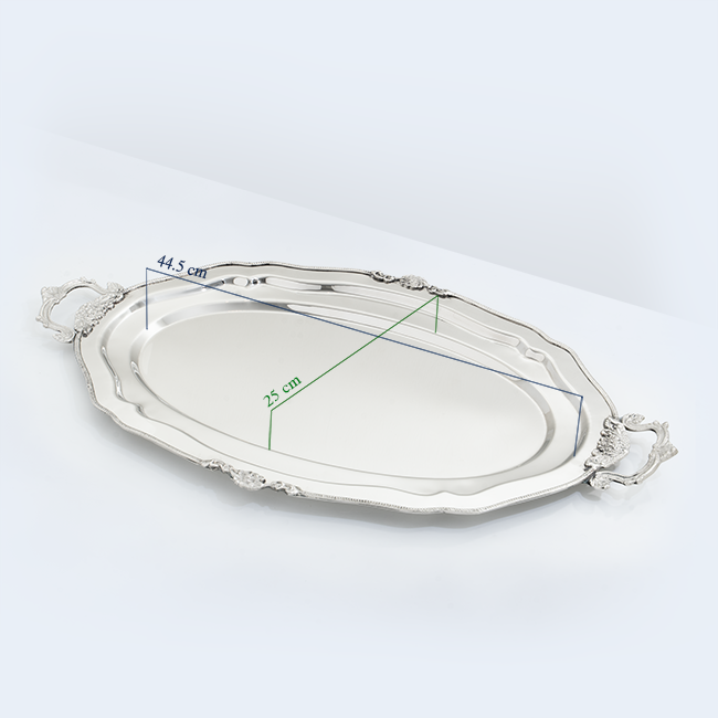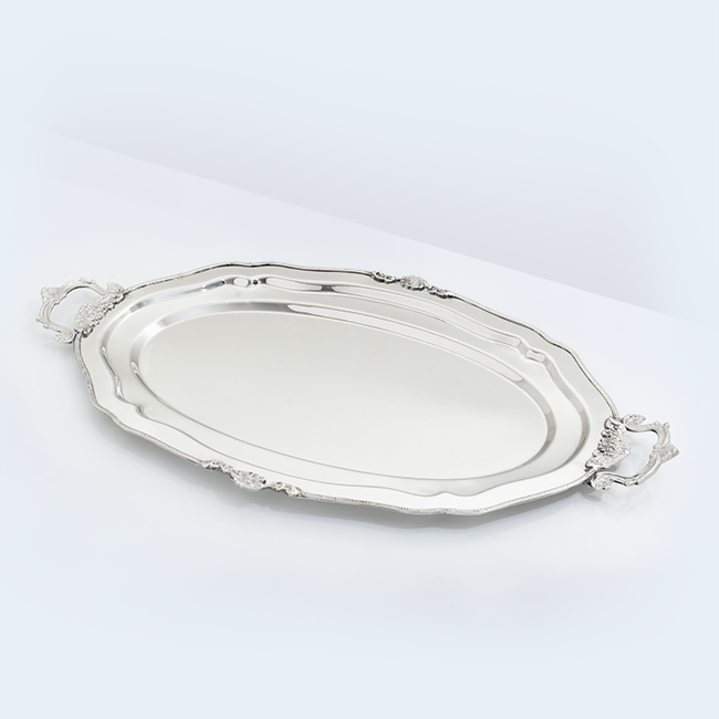 Gracefully oval with delicate detailing, the Evelina tray blends timeless elegance with soft, flowing lines. Crafted in polished steel, it features