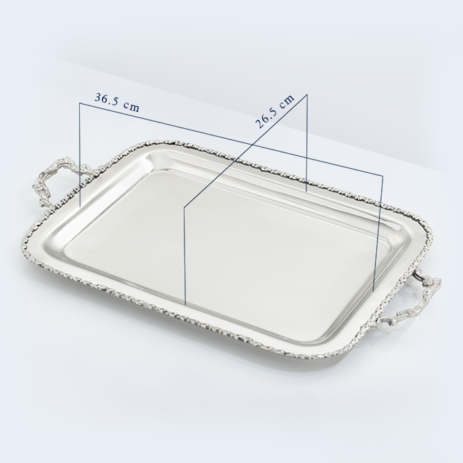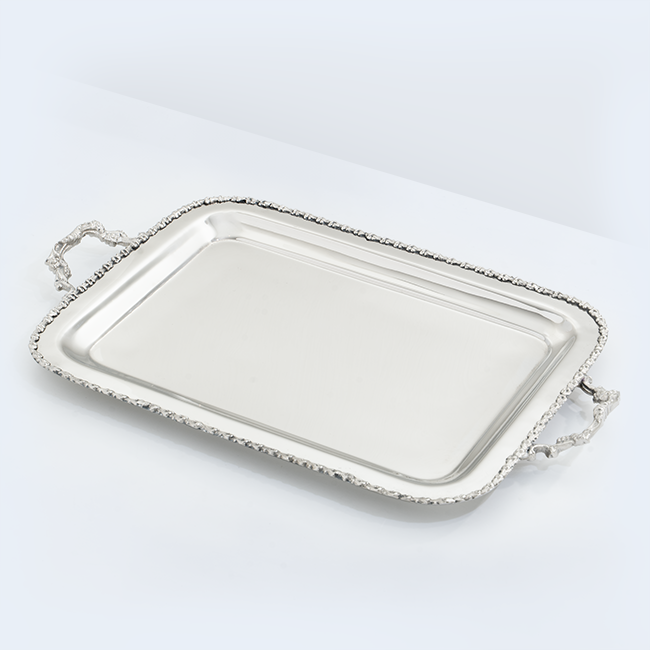 Delicate curves meet classic charm in the Mirabel tray. Crafted from polished steel, its gently rounded edges and rope-textured border evoke timeless elegance. With sculpted handles and a balanced silhouette, it's perfect for refined serving or elegant display in any setting.