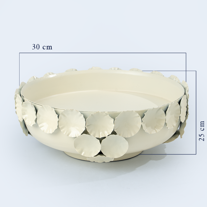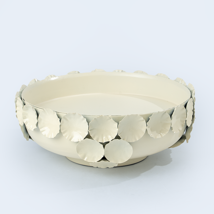 Nerina is an ivory-toned bowl adorned with sculptural petal-like details that ripple with natural rhythm. Inspired by the gentle flow of water and the purity of blossoms, it embodies serene artistry and refined elegance. Perfect as a centerpiece, for serving delicacies, or simply as a statement of timeless design