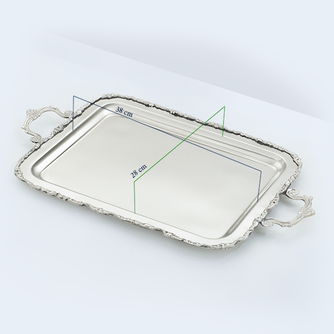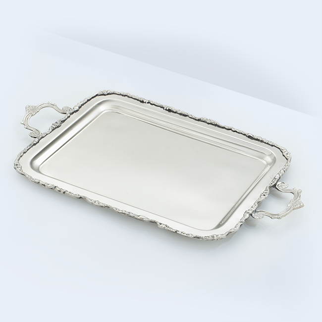 Classic with a touch of grandeur, the Rowena tray features a gleaming steel body framed by richly textured edges and sculpted handles. Its vintage-inspired silhouette makes it ideal for serving with grace or showcasing your finest creations in style. A timeless piece that brings elegance to any occasion.