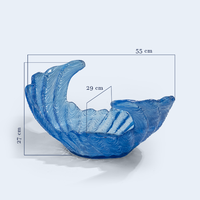 Seraphin – Blue Mirage sweeps like a captured wave, its vivid sea-glass blue and rippled texture recalling shimmering ocean currents. Perfect for desserts, dates or florals, it brings a fresh, coastal glow to any table setting.