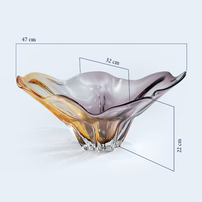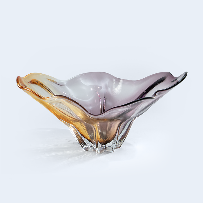 A flowing glass bowl in amber and violet tones, Aria brings harmony and elegance to any display or serving.
