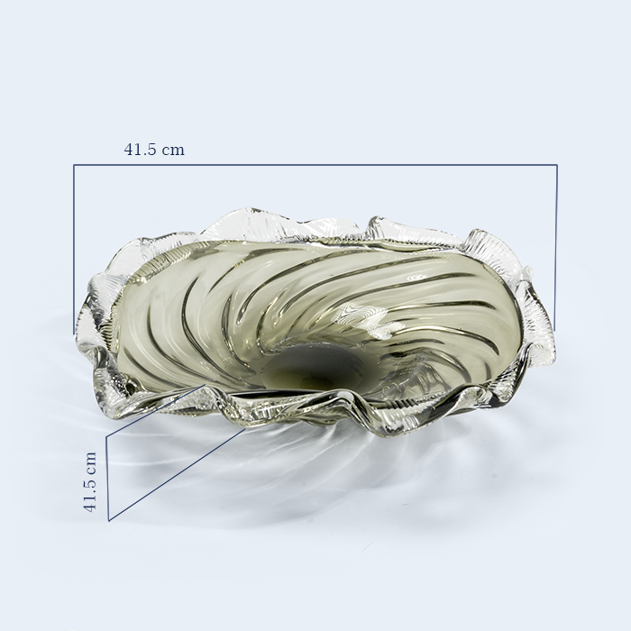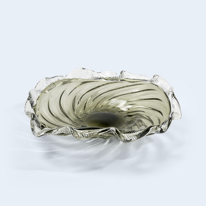 Myrris Tray – A swirling smoked-glass centerpiece with ruffled edges, Myrris brings soft, sculptural movement to the table, perfect for serving chocolates, fruits, or dates with understated elegance.