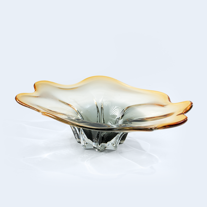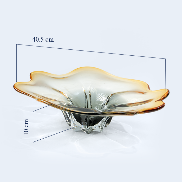With soft amber edges and a flowing petal-like form, Vian is a luminous glass bowl that blends nature’s grace with timeless artistry — perfect for refined serving or elegant display.